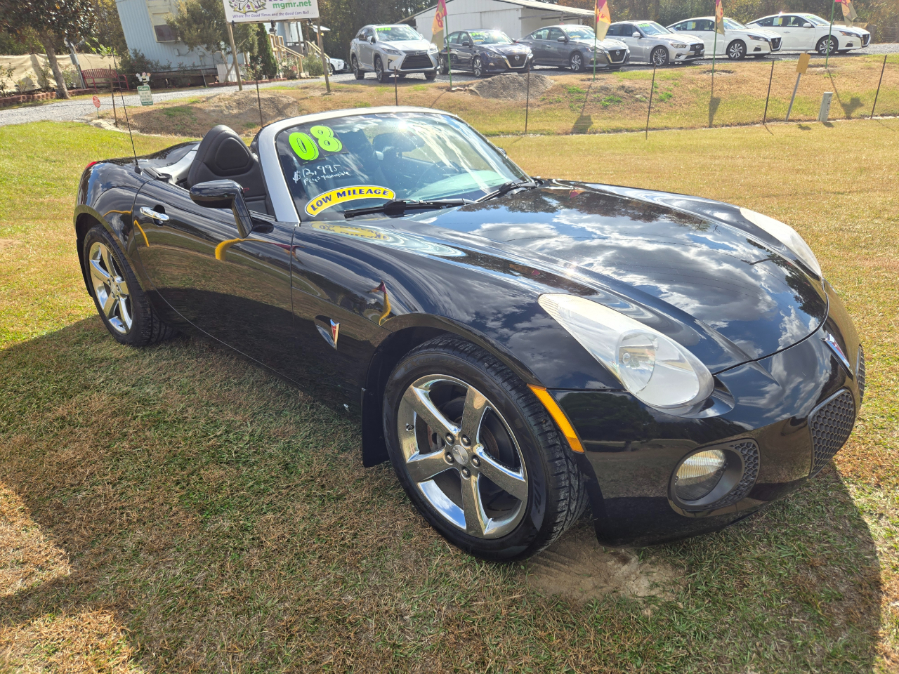 2008 Pontiac Solstice GXP 2.0 Turbo engine/auto transmisson. with only 63,499 original miles! $12995 plus tax and title. 3 Month 3,000 mile Powertrain Warranty included. We do not offer any financing or payment plans. We are happy to work with your own Bank or Credit Union. This is how we keep our prices competitively low. You can view the Carfax and vehicle information from our website. 2008 Pontiac Solsitce GXP in excellent condition inside and out. Exterior paint still has a beautiful finish and is in excellent condition. Leather interior is just as nice with very little wear. Convertible top is in excellent conditon also with no leaks. This vehicle appears to have been garage kept most of it's life. Runs and drives excellent. The mileage reflects how nice this car is. Come see us today at Mardi Gras Motors 9269 HWY 18 in Raymond MS 39154. For more photos and information on this car and for a complete inventory list go to our website at mgmr.net or call Steve at 601-665-5429.